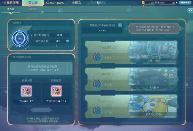 - 势力战拍卖场结束后,可在下一场势力战比赛开始前