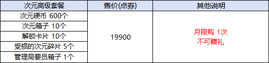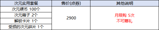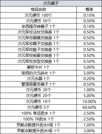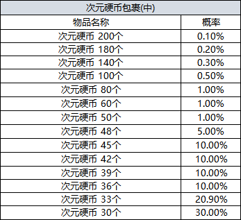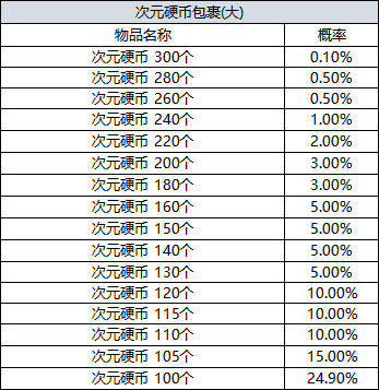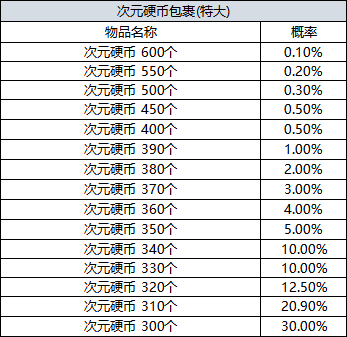 - 普通商店-活动更新次元硬币包裹及次元箱子。使用1个次元硬币包裹,依概率可获得1个奖励道具。