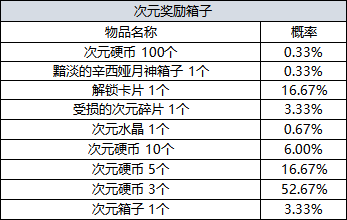- 使用1个次元奖励箱子,依概率可获得2个奖励道具。