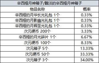 - 使用1个辛西娅月神箱子,依概率可获得2个奖励道具。