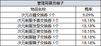 - 使用1个管理局要员箱子,依概率可获得1个奖励道具。