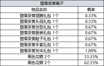- 使用1个堕落荣誉箱子,依概率可获得1个奖励道具。