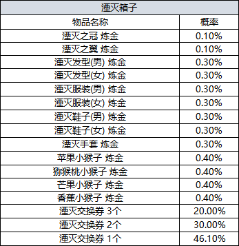 - 使用1个湮灭箱子,依概率可获得2个奖励道具。