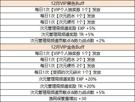 ,vip9商店上架12月VIP黑色Buff道具,vip10商店上架12月VIP金色Buff道具,可使用至