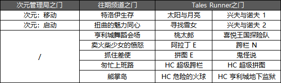 ],通过次元管理局的时空隧道,避开障碍物移动到其他次元的地图。8人个人赛模式,按照到达终点的顺序进行排名,如无法跑到一定距离将不会获得奖励。