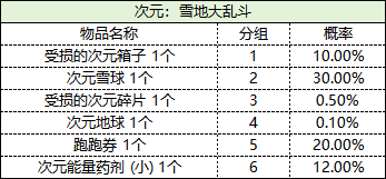 - 次元频道内更新地图:[次元:雪地大乱斗],5分钟内最先达到30分的队伍获胜。