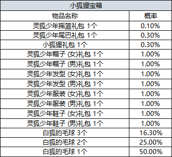 - 商店内更新小狐狸宝箱,使用1个小狐狸宝箱依概率可获得2个奖励道具。