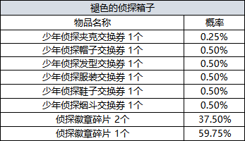 - 使用1个褪色的/传说中的少年侦探箱子,依概率获得1个奖励道具。
