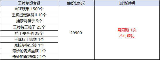 - 商店内上架王牌梦想套餐,每月限购1次。