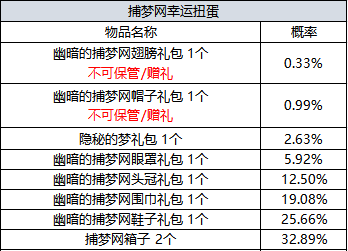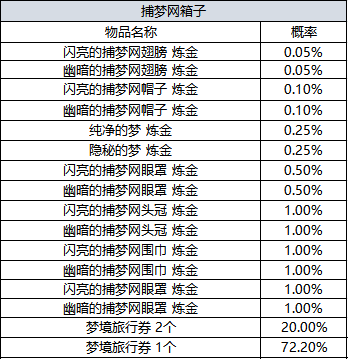 - 使用1个捕梦网箱子,依概率可获得2个物品。