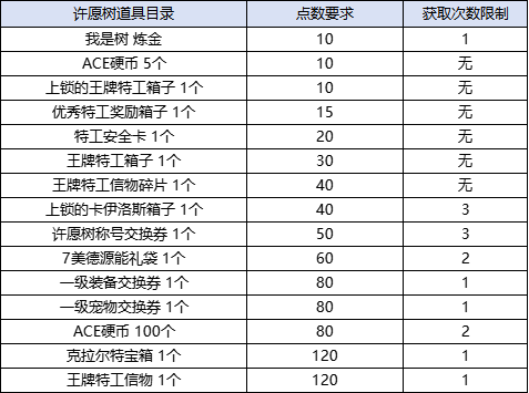 按钮即可许愿。每个奖励道具要求的愿望点数不同,可增加次数有限;愿望点数不会扣除,但每日