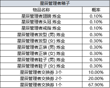 - 使用1个星辰管理者箱子,依概率可获得2个奖励道具。